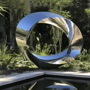 Grande alta lucida moderna all'aperto astratto giardino rotondo in metallo in acciaio inossidabile scultura personalizzata