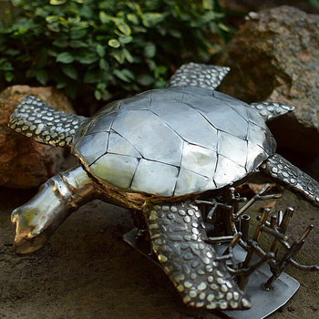Grande scultura in metallo 304 in acciaio inox statua animale tartaruga specchio lucidatura vento cinetica led scultura personalizzata